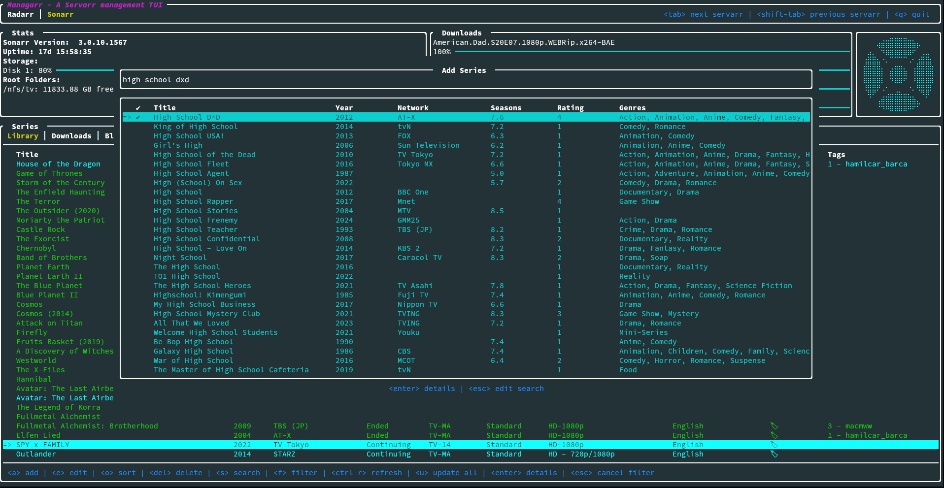 TL;DR: Managarr is a TUI and CLI for managing your Servarr instances. As of now, it now supports both Radarr and Sonarr and all the features that are available in the UI are also available in the CLI for scripting and additional automation.