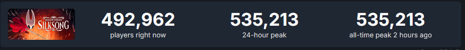 arrow-up1250arrow-down1external-linkHollow Knight: Silksong Is Out Now — but It's So Popular It's Crashing Storefronts Including Steamwww.ign.comalessandro@lemmy.ca to PC Gaming@lemmy.caEnglish · 4 months agomessage-square53linkfedilink