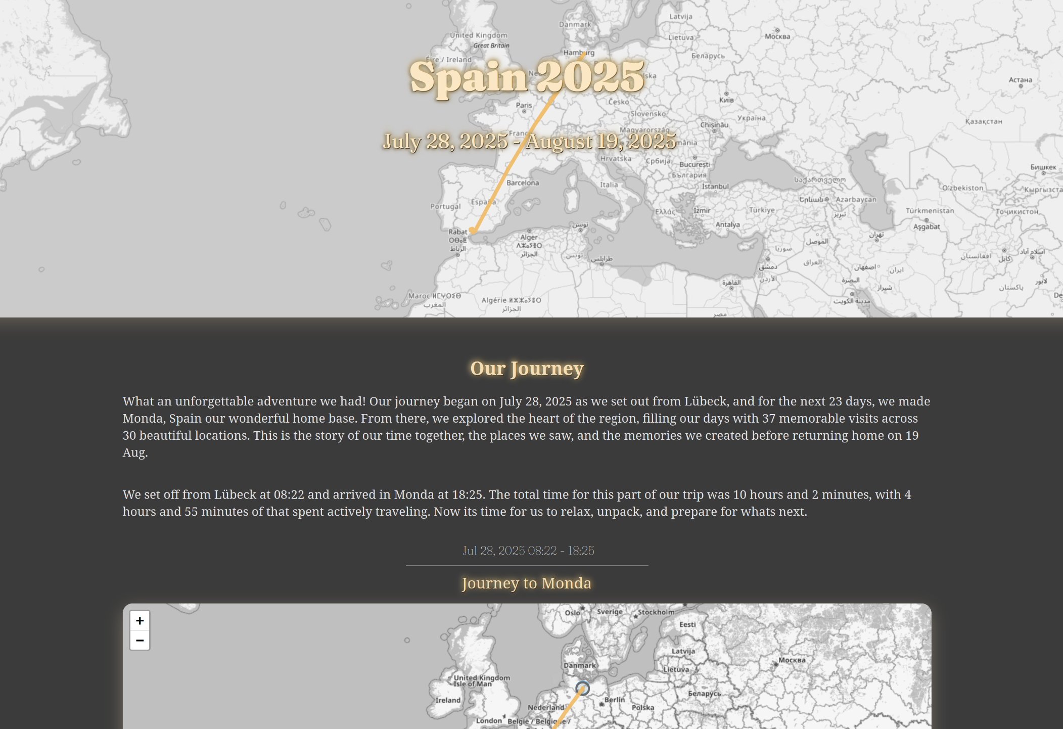 - Building-Block Editor: Customize your Memory with modular blocks. Add text for reflections, highlight specific visits or trips on maps, and create image galleries. It’s flexible and intuitive, letting you craft personalized narratives.