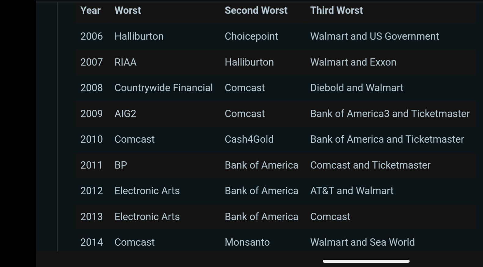 Serious contenders based on their overall effect on humanity would be Monsanto, RTX, Aramco, UnitedHealth and Nestlé.It’s from PC Gamer, so I think it’s safe to say they mean worst gaming company in the world. They could have said that though.