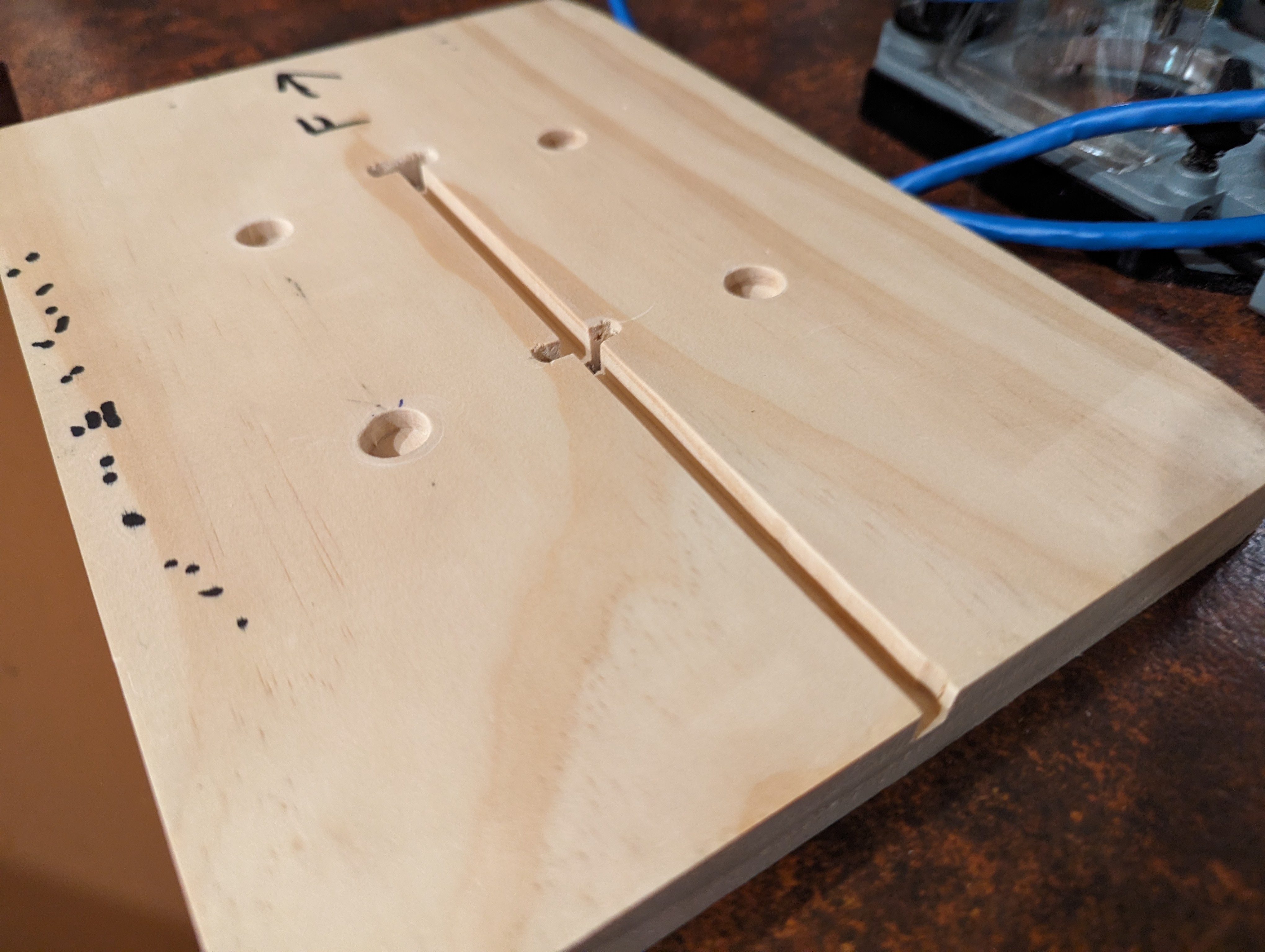 I also got started on making a housing for the solar panels. I used the router to carve out a 1-2mm area for them to sit in, and a much deeper ditch linking the two terminals, which you’ll see in a later picture. For now, here’s how they look sitting in it.