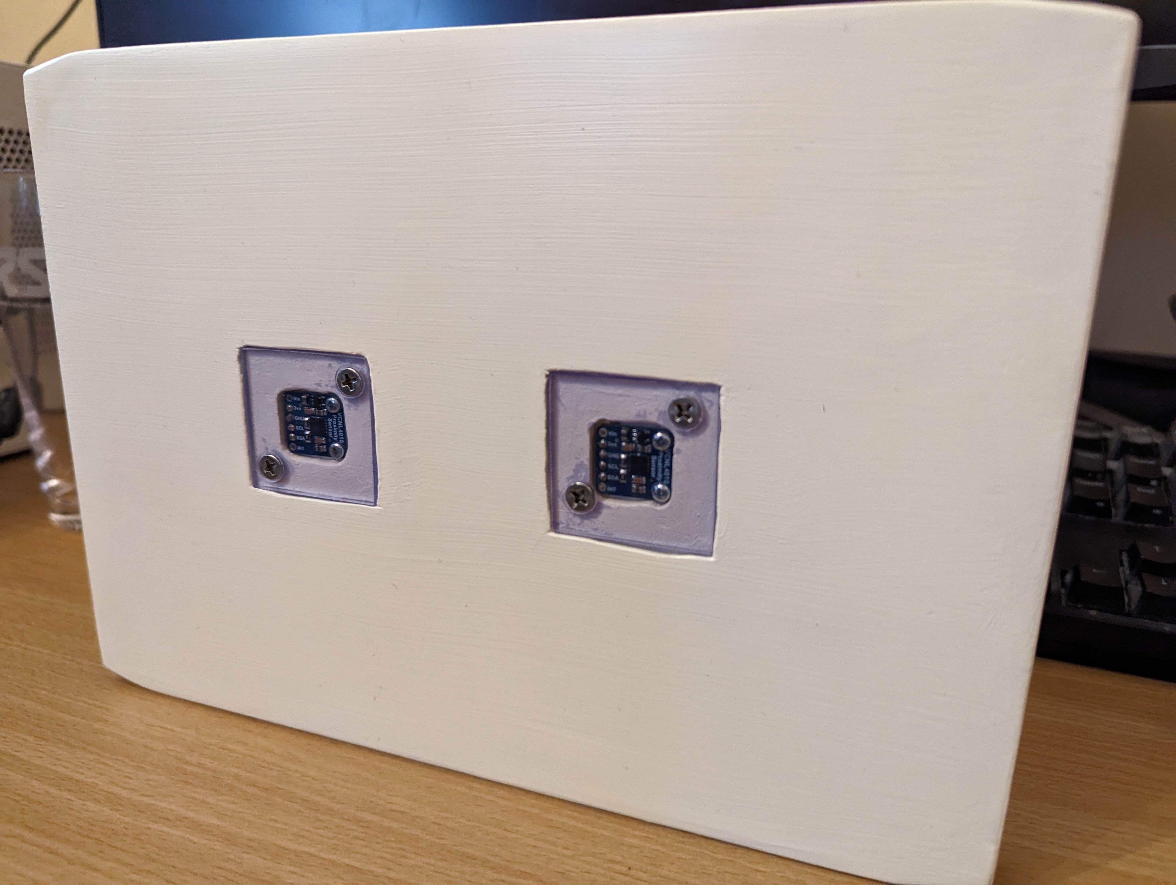 I had originally planned to just solder wires into the sensors, but then I realised JST connectors would fit perfectly into the sensors. This meant I had to widen the holes somewhat, which I did with a small chisel and file.